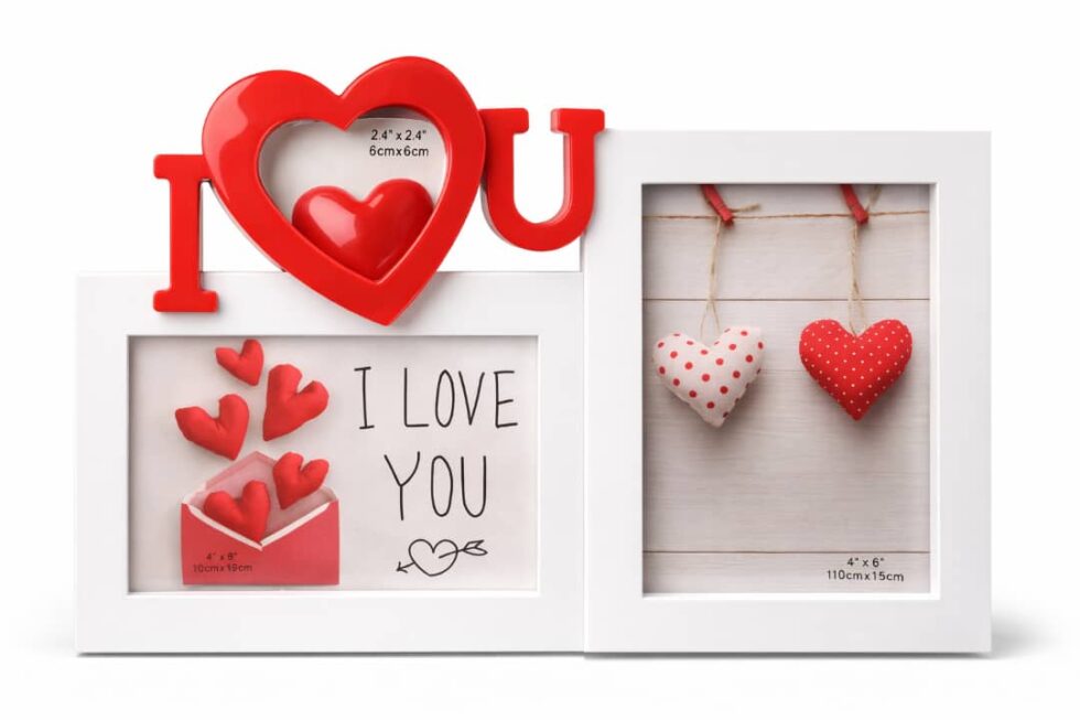 Double photo frame with a romantic “I ❤ U” design, perfect for photos and special messages. A meaningful gift to express love.