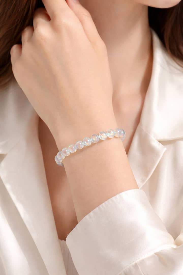 Bracelet with soft opaline reflections, elegant and minimalist, perfect for daily wear or special occasions.